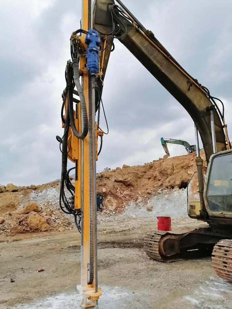 4)Excavator mounted rock drill can use the same type of hydraulic oil pipe line as hydraulic breaker