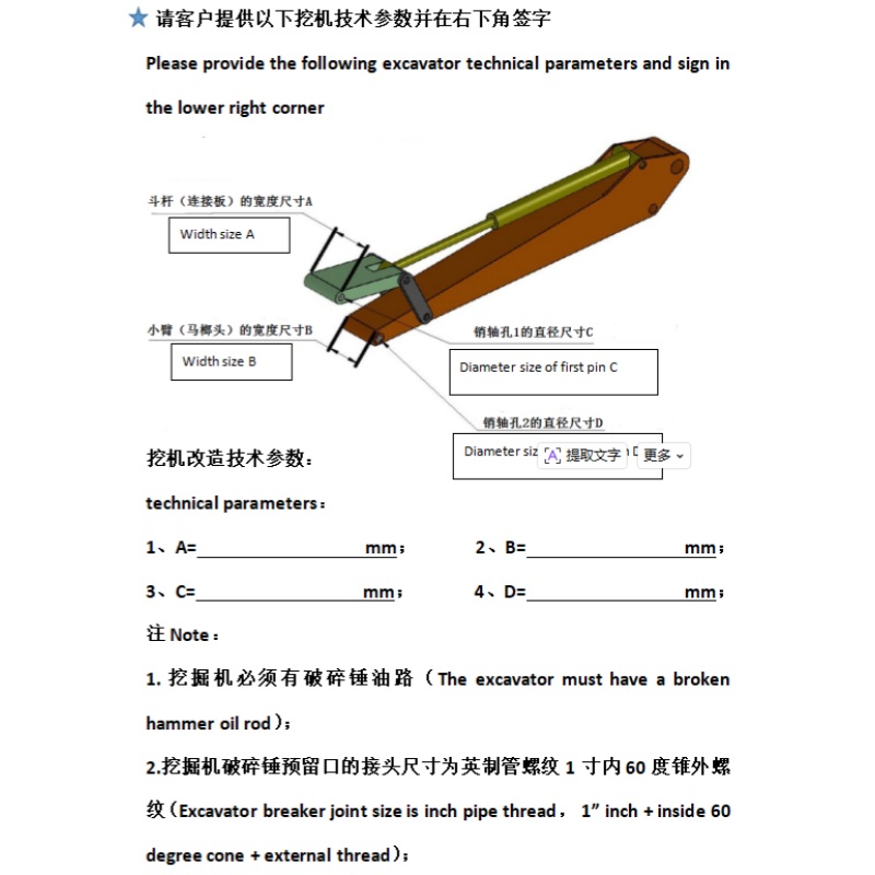 Applicable Excavator Specifcation(t) : ≥20