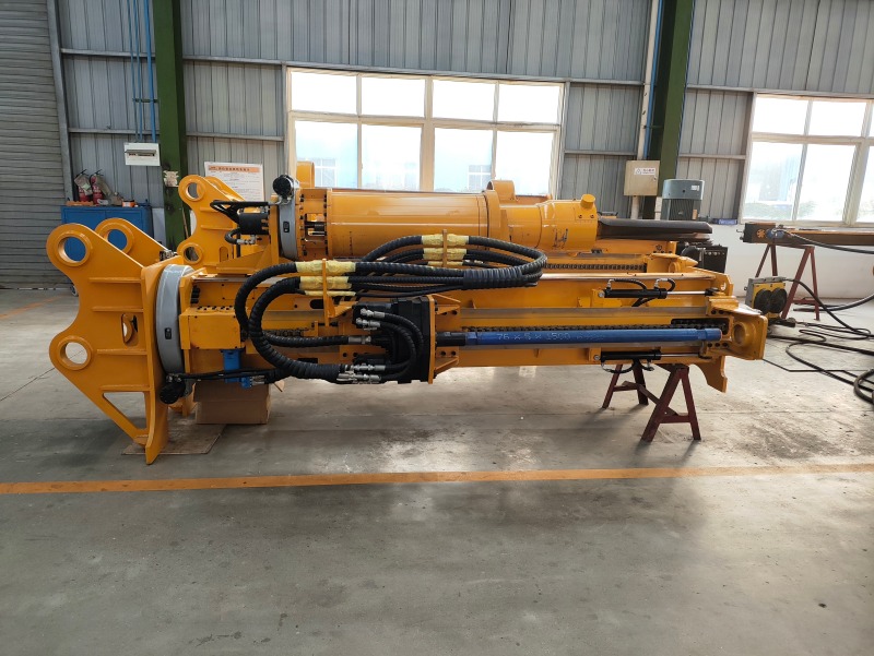 PD130 DTH Integral drilling and splitting machine, is a hydraulic system that utilizes the excavator's own hydraulic system. Through modification, the hydraulic source of the excavator is used to achieve full hydraulic rock drilling, drilling, and splitting work without damaging the original working performance of the excavator.
