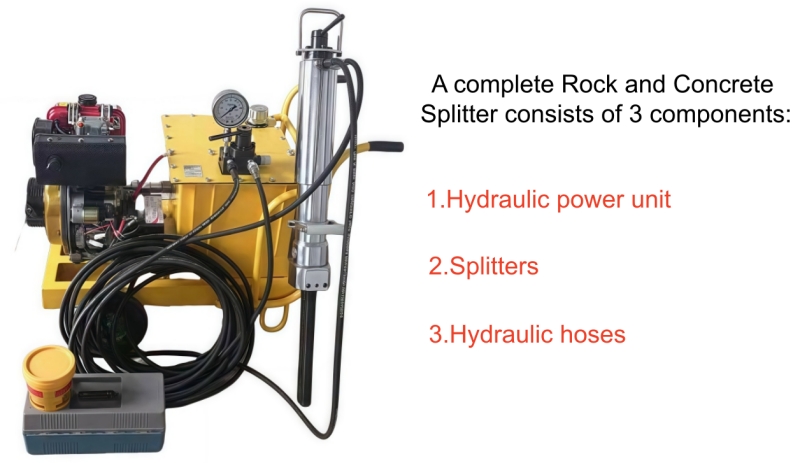 A complete Prodrill series rock and concrete splitter consists of 3 components: