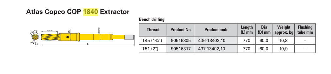 Cop1840 T45-770 Shank Adapter for Atlas Copco drifter: