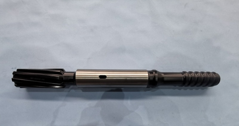 The task of the shank adapter is to transmit rotation torque, feed force, impact energy and flushing medium to the drill string (extension drill rods, drifting drill steels).