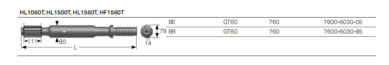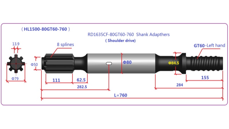 HL1060T/HL1500T/HL1560T/HF1560T-GT60-L760-D80 Shank Adapter (7600-6030-05; 7600-6030-15)