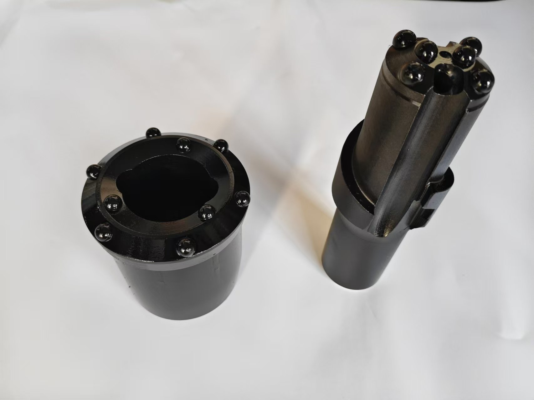 1. Ring bit and casing shoe assembly is welded to casing prior to drilling. Lock the assembly into pilot bit with hammer. The pilot bit\'s upper shoulder engages the shoulder of the casing shoe.